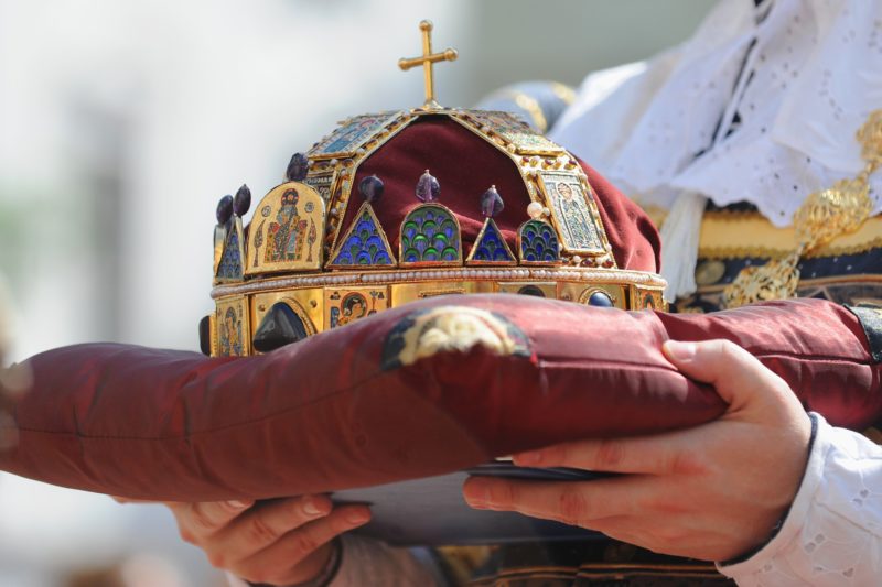 The coronation itself took place at St. Martin’s Cathedral, where the future monarch would ride from the Castle or the Archbishop’s palace on either a horse or in a coach. He would enter the sanctuary from the southern entrance and, after having been crowned king, would leave the House of Coronation by the north gate. In the solemnly decorated cathedral, the king would be welcomed by the clergy and world dignitaries. Loges would be set up for those watching the coronation ceremony, which lasted several hours, and stairs to the stage would be set up right in the cathedral. The coronation ceremony took place during a Pontifical High Mass. The Holy Crown of Hungary, also known as the Crown of St. Stephen, would be placed on the head of the new king by the Archbishop of Esztergom, the highest dignitary in the region representing the Pope.