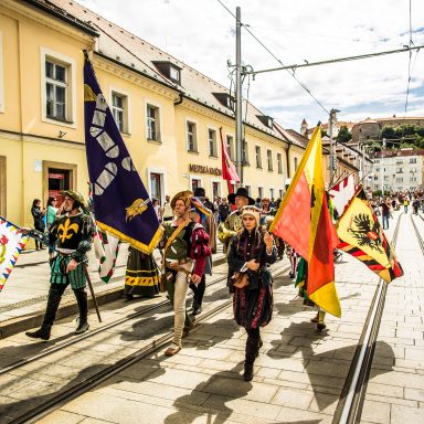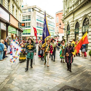 14:00 – KRÖNUNGSPARADE durch die Stadt von der Burg Bratislava über Palisády, Zámocká, Kapucínska, Michalská, Ventúrska, Panská Straße bis zum Hauptplatz