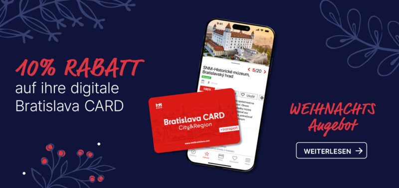 Um die festliche Atmosphäre voll auszukosten, lohnt sich die Bratislava CARD. Mit ihr fahren Gäste kostenlos mit dem öffentlichen Nahverkehr. Außerdem erhalten sie freien oder ermäßigten Eintritt in Museen, Galerien und zu Aussichtspunkten. Zusätzlich ist eine kostenlose Führung durch die Altstadt inbegriffen. Die Karte bietet daher eine einfache Möglichkeit, Bratislava während der Weihnachtszeit intensiver zu erleben.
