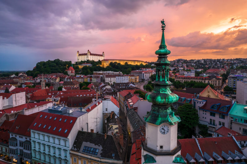 Ein Symbol des heutigen Bratislava ist die Burg, die von 1536 Residenz der ungarischen Könige war und in deren südwestlichem Turm ab dem Jahre 1784 die Kronjuwelen bewacht wurden. Seine prächtigen Räume füllten sich vor allem während der Krönungen mit edlen Gästen. Nach einem Brand im Jahre 1811 wurden der Primatialpalast und der Grassalkovichov-Palast zu vorübergehenden Herrschersitzen.