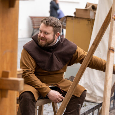 Zahlreiche Handwerker, darunter ein Schmied, ein Imker, ein Münzmeister, ein Schneider, ein Kerzenmacher, ein Zinngießer, ein Täschner, ein Töpfer, ein Drechsler und ein Schreiber, präsentieren ihre Fertigkeiten und handgemachten Waren. Sie können zudem den Stand eines Waffenschmieds besuchen, um zu sehen, wie ein Kettenhemd in Handarbeit gefertigt wird.