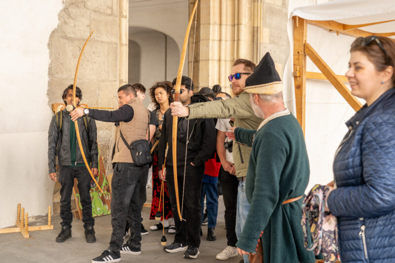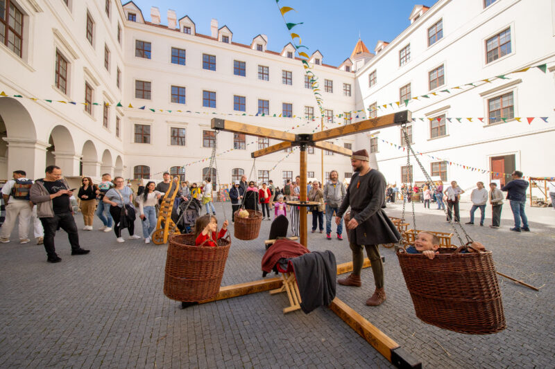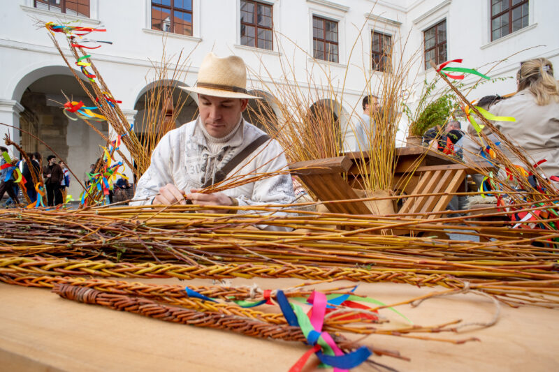 Der Markt bietet die Gelegenheit, regionale Bräuche zu entdecken, wie das Flechten von Weidenruten („Korbáče“) oder das Binden von Blumenkränzen. Während Sie die Stände erkunden, können Sie Falkner treffen, sich im historischen Bogenschießen versuchen oder eine Fahrt auf einem hölzernen Karussell genießen.