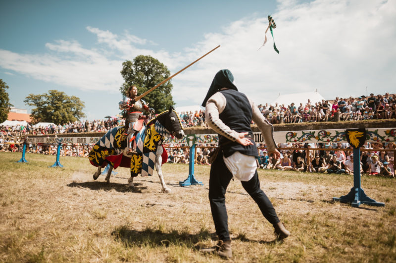 The magnificence of the knights’ horse tournament at the festival moved up another level this year. On the last weekend of May, the most famous knights from all over the area will gather at the Red Stone Castle in a large horse tournament, where they will fight not only for the favour of ladies of the court. Diverse chivalry disciplines will eventually replace dangerous duels and raids with long wooden lances. Bertrand de Bezié and his mighty blackhorse Jack, Duke Heinrich of Wittelsbach with wild steed Lucas, Angelo da Champagne and horse Rudiger or knight Vajk Hunyadi and horse René will also perform there.