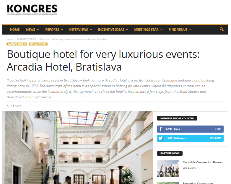 Boutique hotel for very luxurious events: Arcadia Hotel, Bratislava