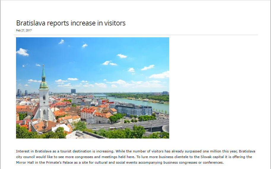 Bratislava reports increase in visitors