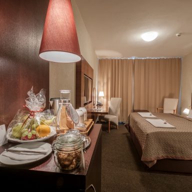 • Hotel disponuje 4 konferenčnými sálami s kapacitou do 120 osôb, v ktorých radi zorganizujeme vaše školenie, konferenciu, svadbu či rodinnú oslavu. Priamo v hoteli sa tiež nachádza privátne relax centrum s vírivkou s bluetooth, ktorá prehrá z Vášho smartphone aj vašu hudbu, suchá sauna, parná sauna a odpočinková miestnosť.