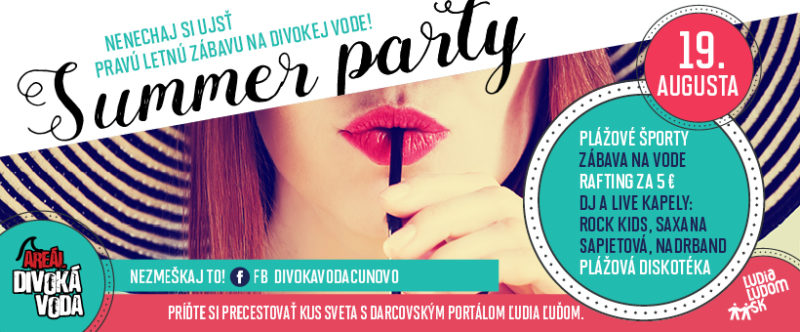 Dňa 19. augusta organizuje areál Divoká Voda Čunovo podujatie pre verejnosť s názvom Summer party.
